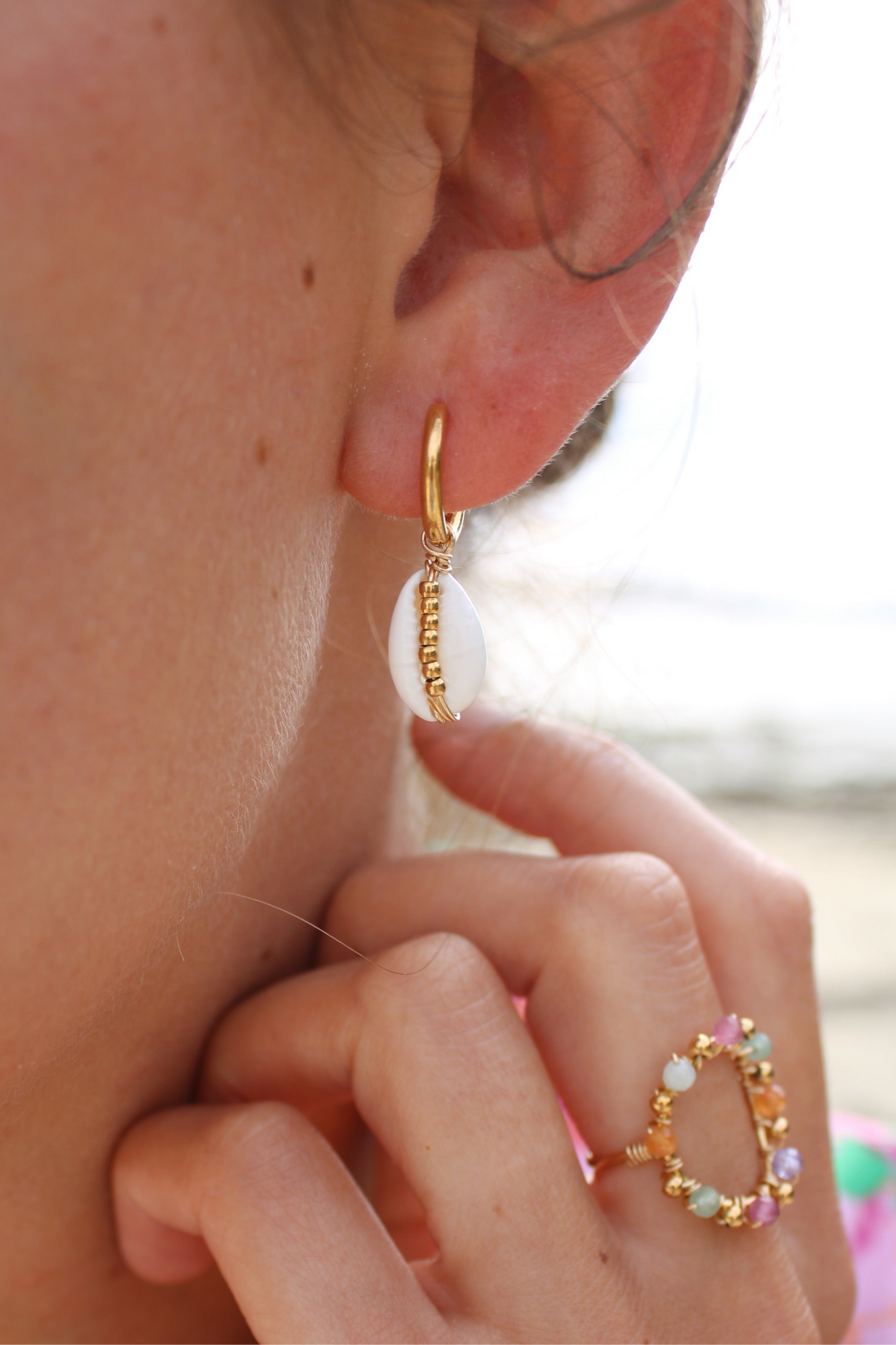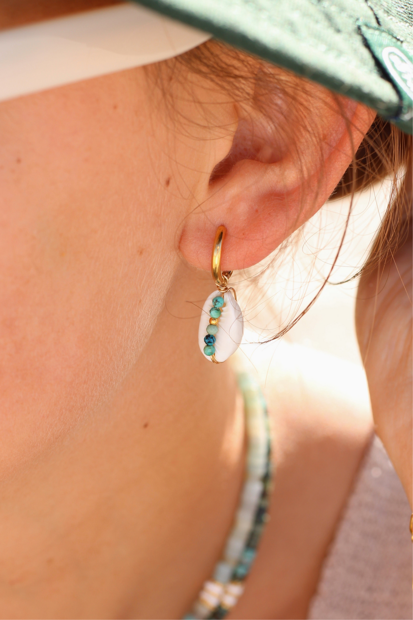 - Coquillage & perles en pierres naturelles facettées (la couleur et la taille des perles peuvent légèrement varier)