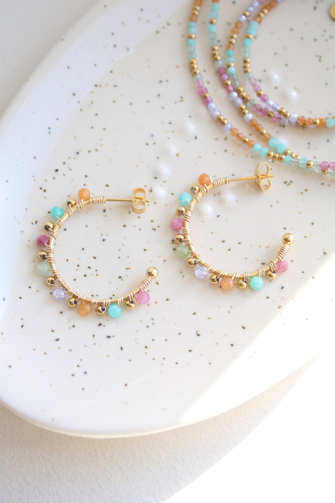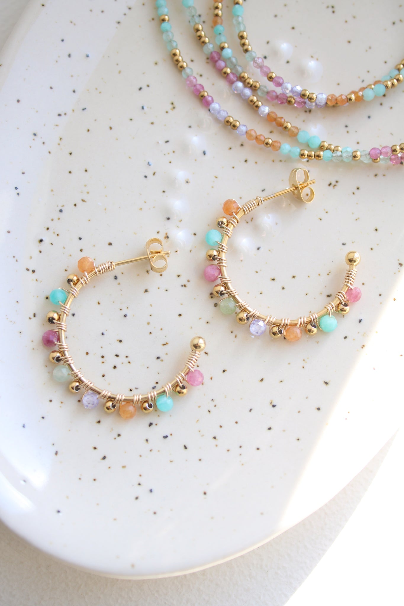 • Perles en pierres naturelles facettées (la couleur et la taille des perles peuvent légèrement varier)