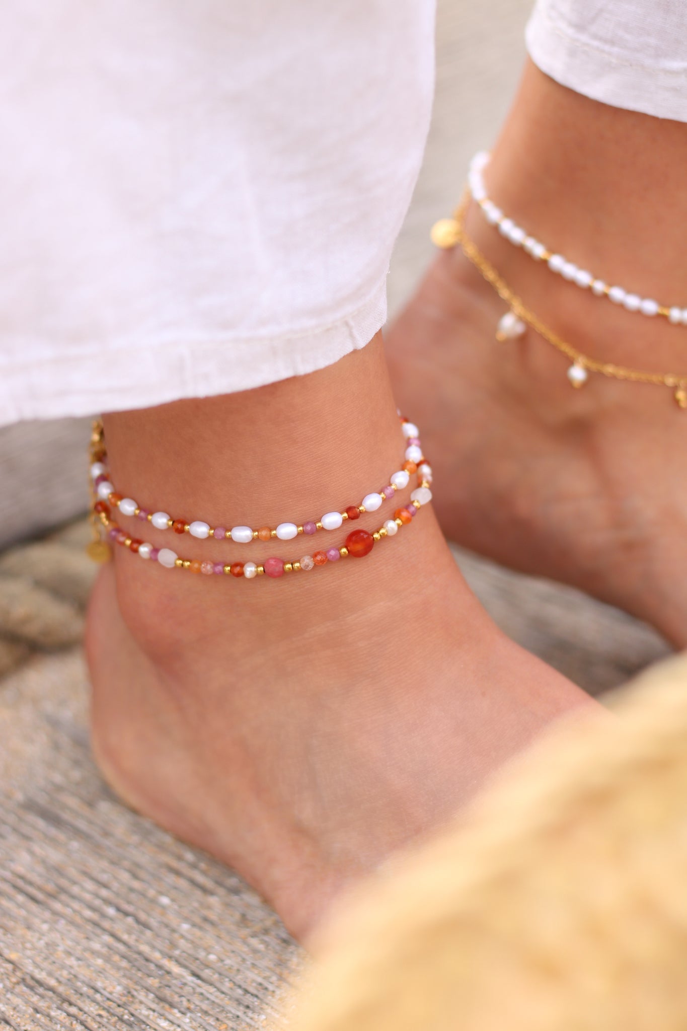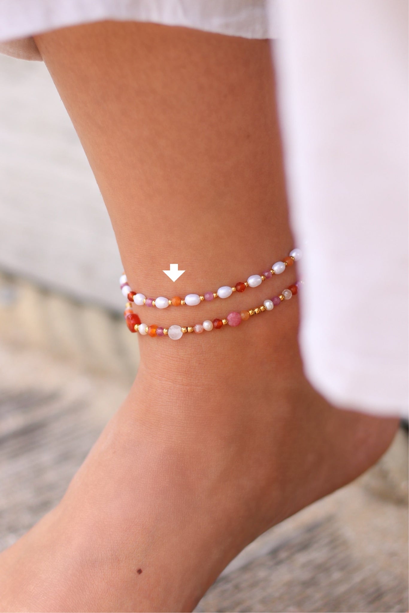 - Bracelet de cheville en perles d’eau douce & pierres naturelles facettées