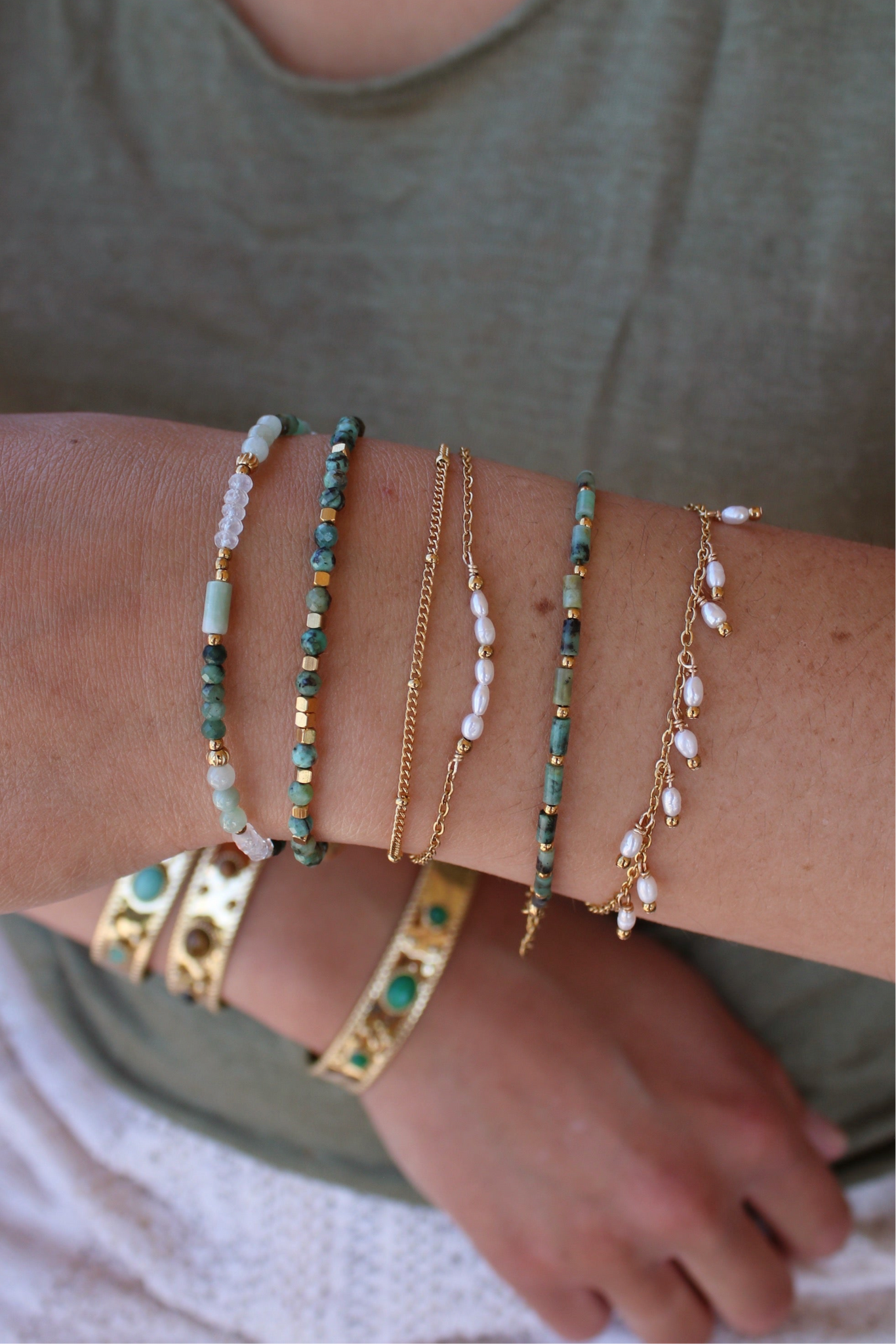 • Bracelet chaîne fine dorée et perles d'eau douce blanches