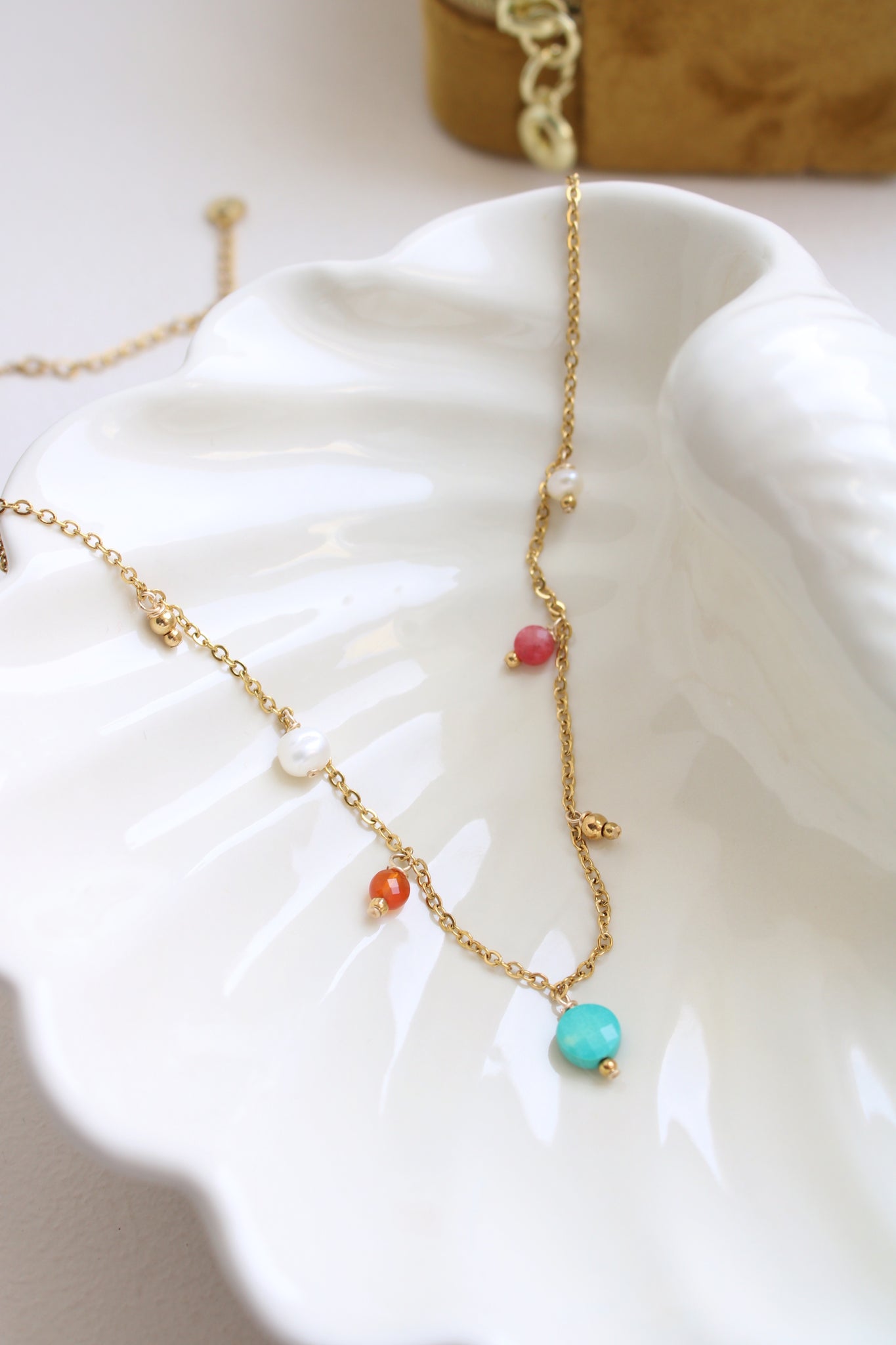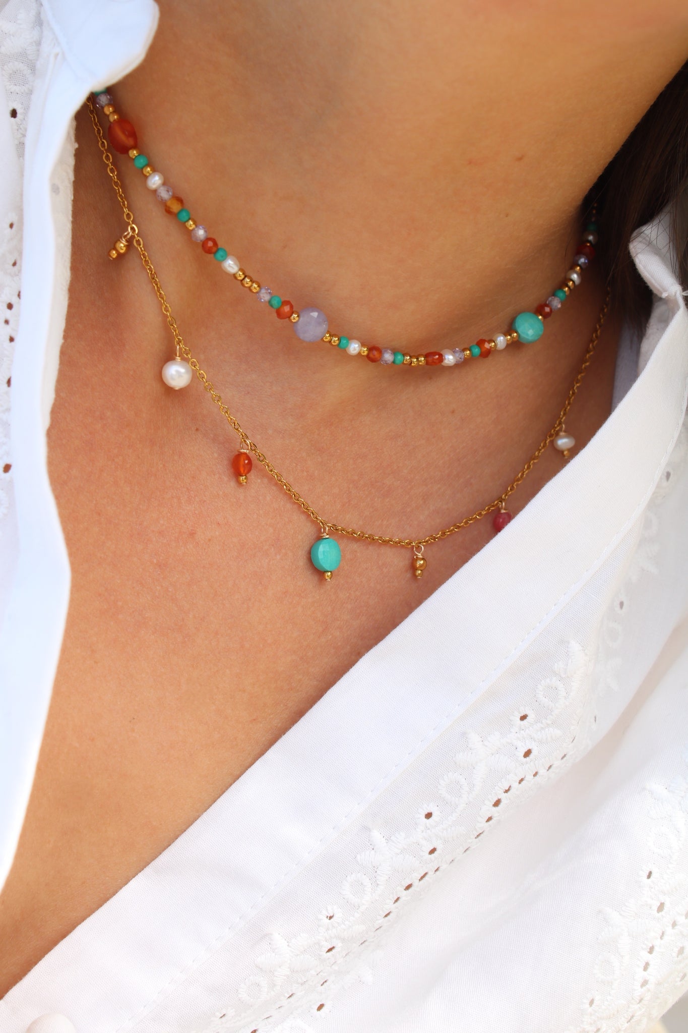 - Perles naturelles: la taille et couleur des perles peuvent légèrement varier
