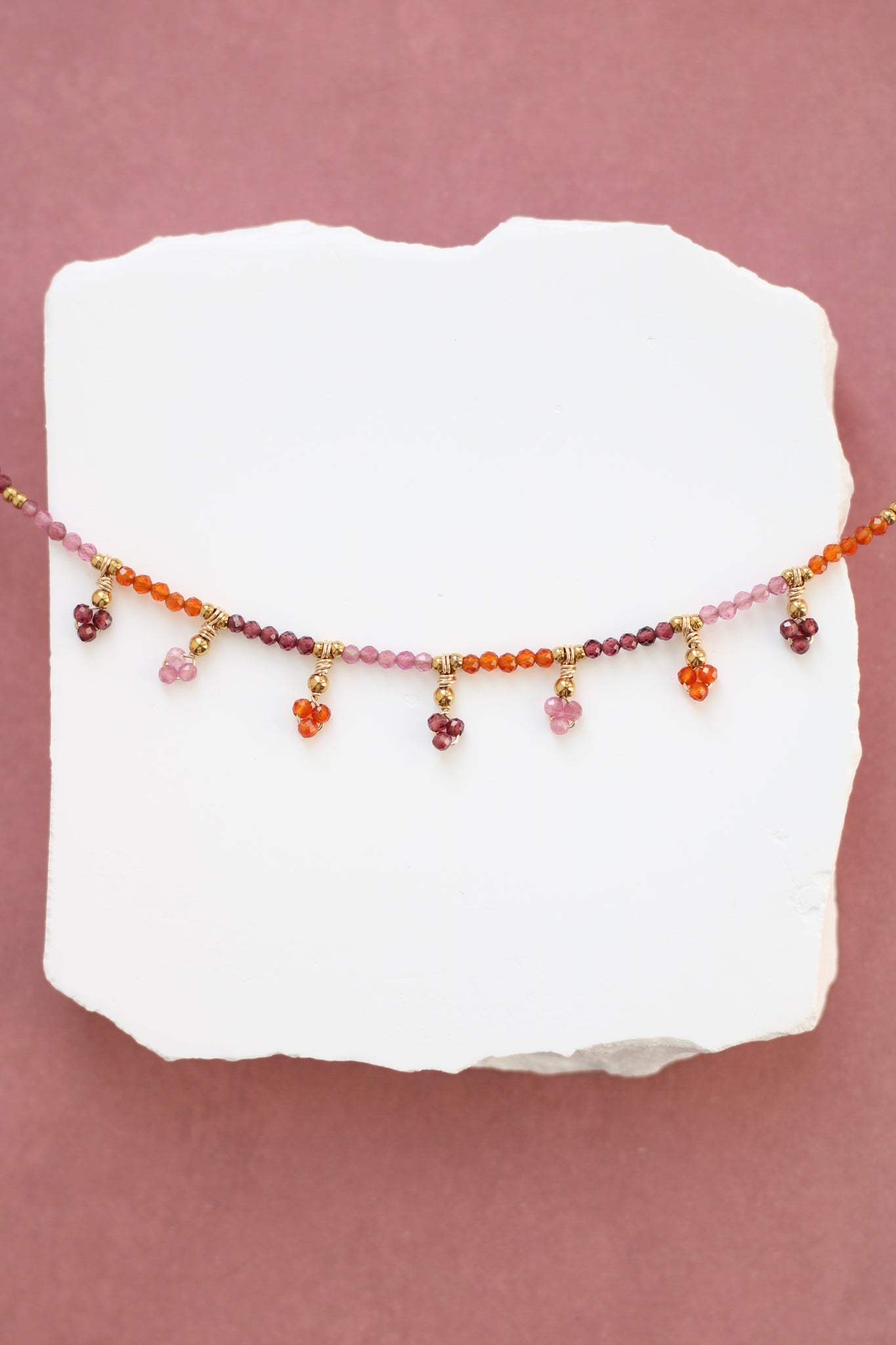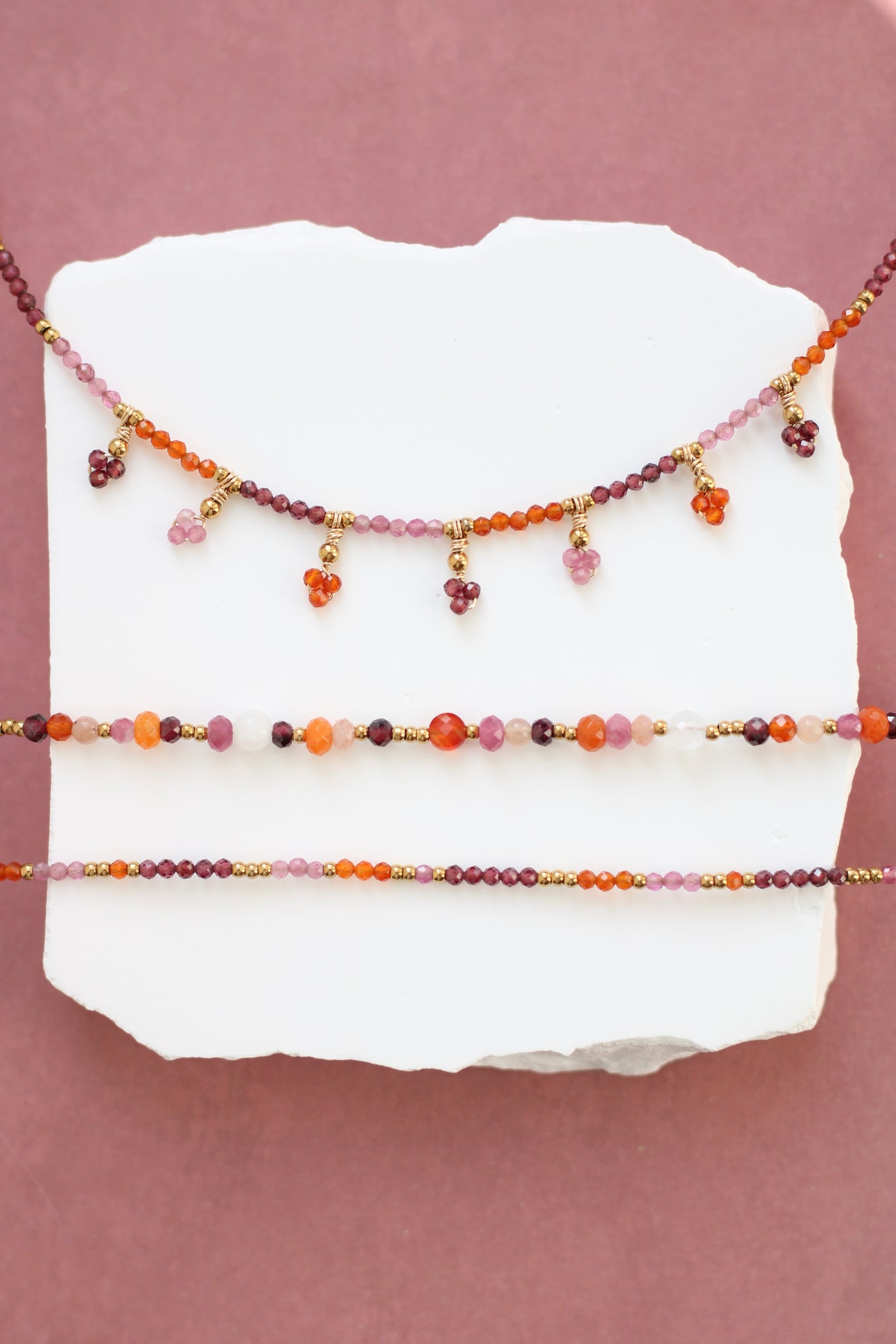 • Collier en pierres naturelles facettées: grenat, tourmaline & agate orange