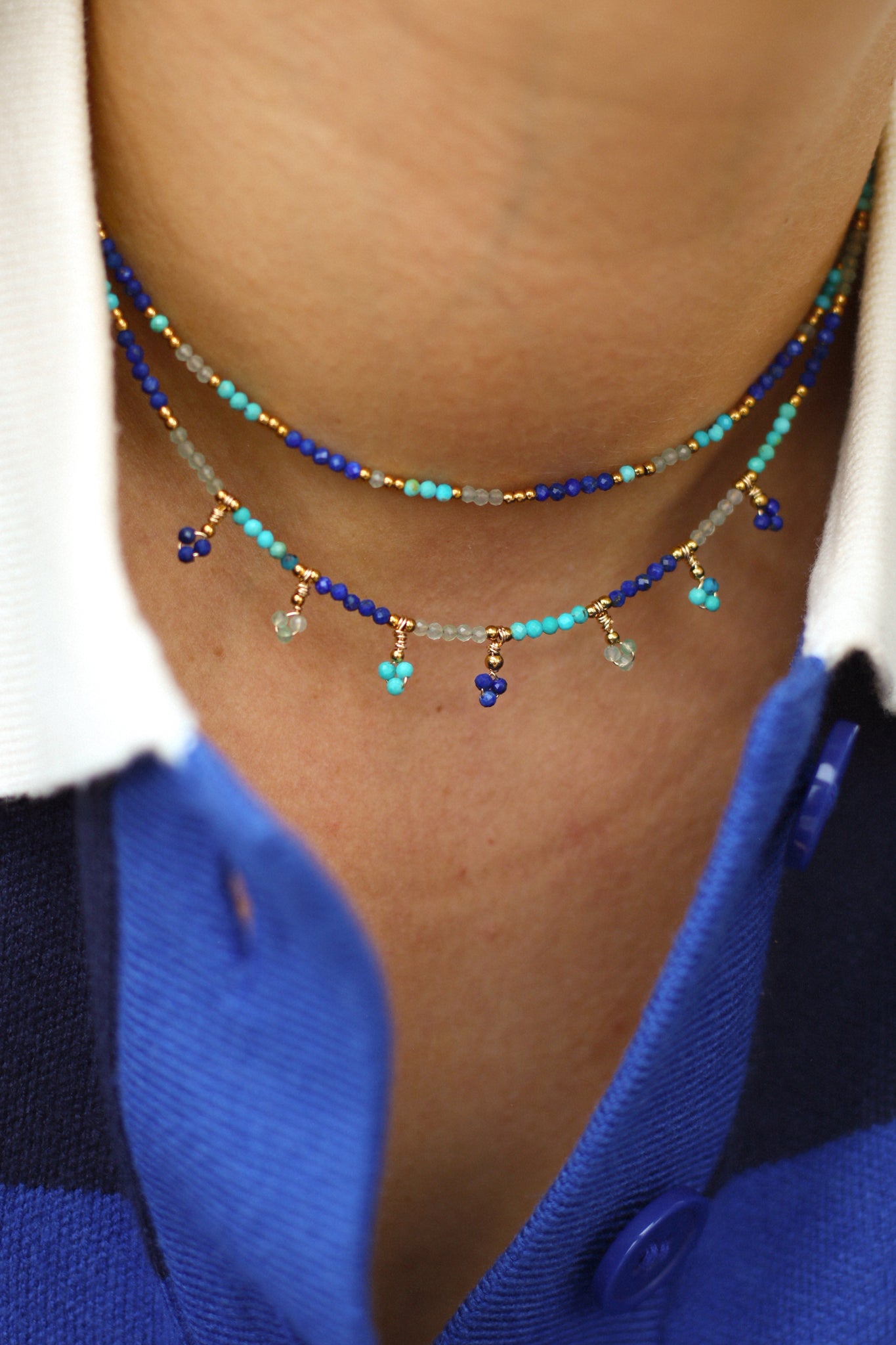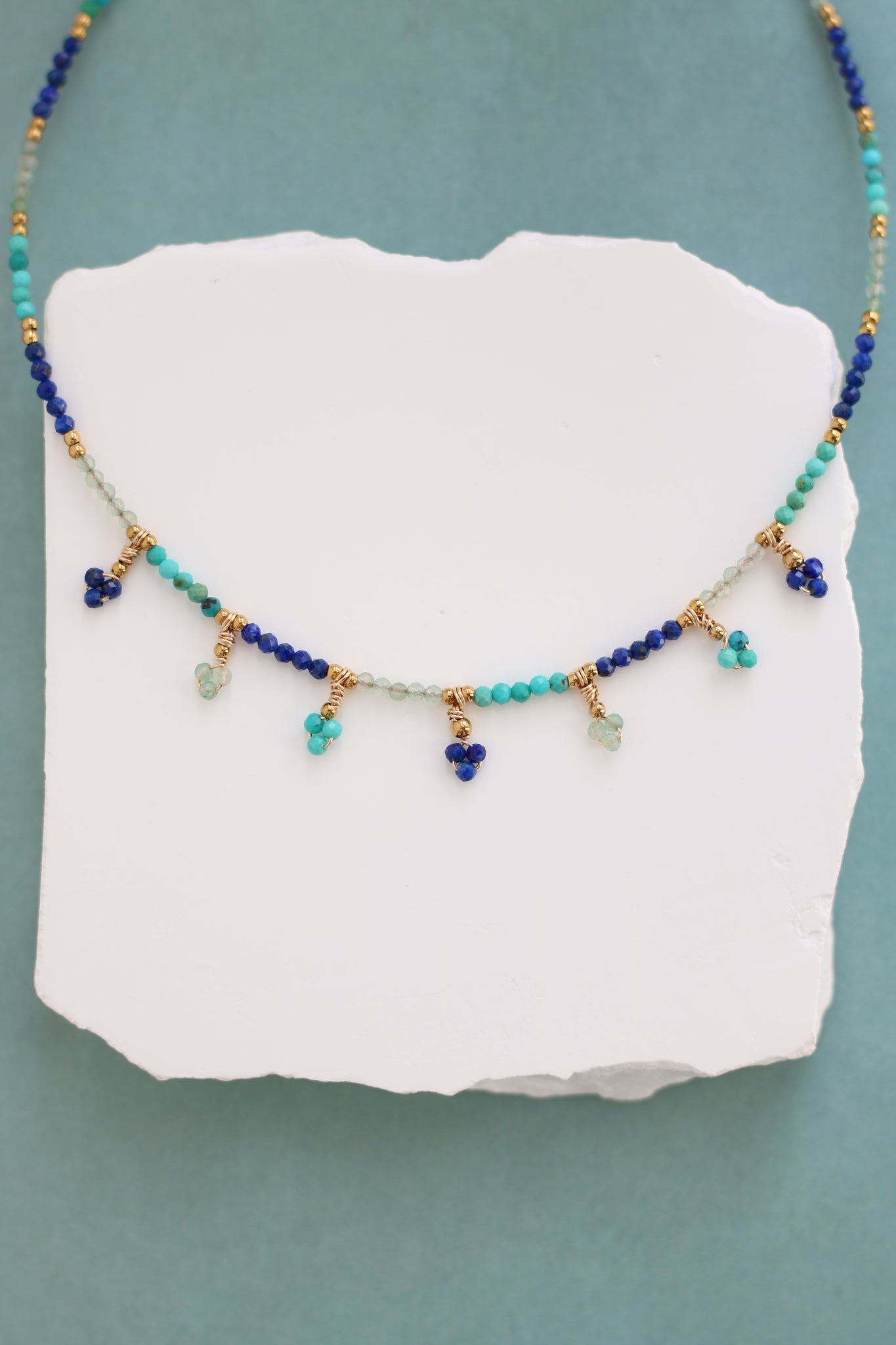 • Collier en pierres naturelles facettées: lapis lazuli, aventurine & turquoise